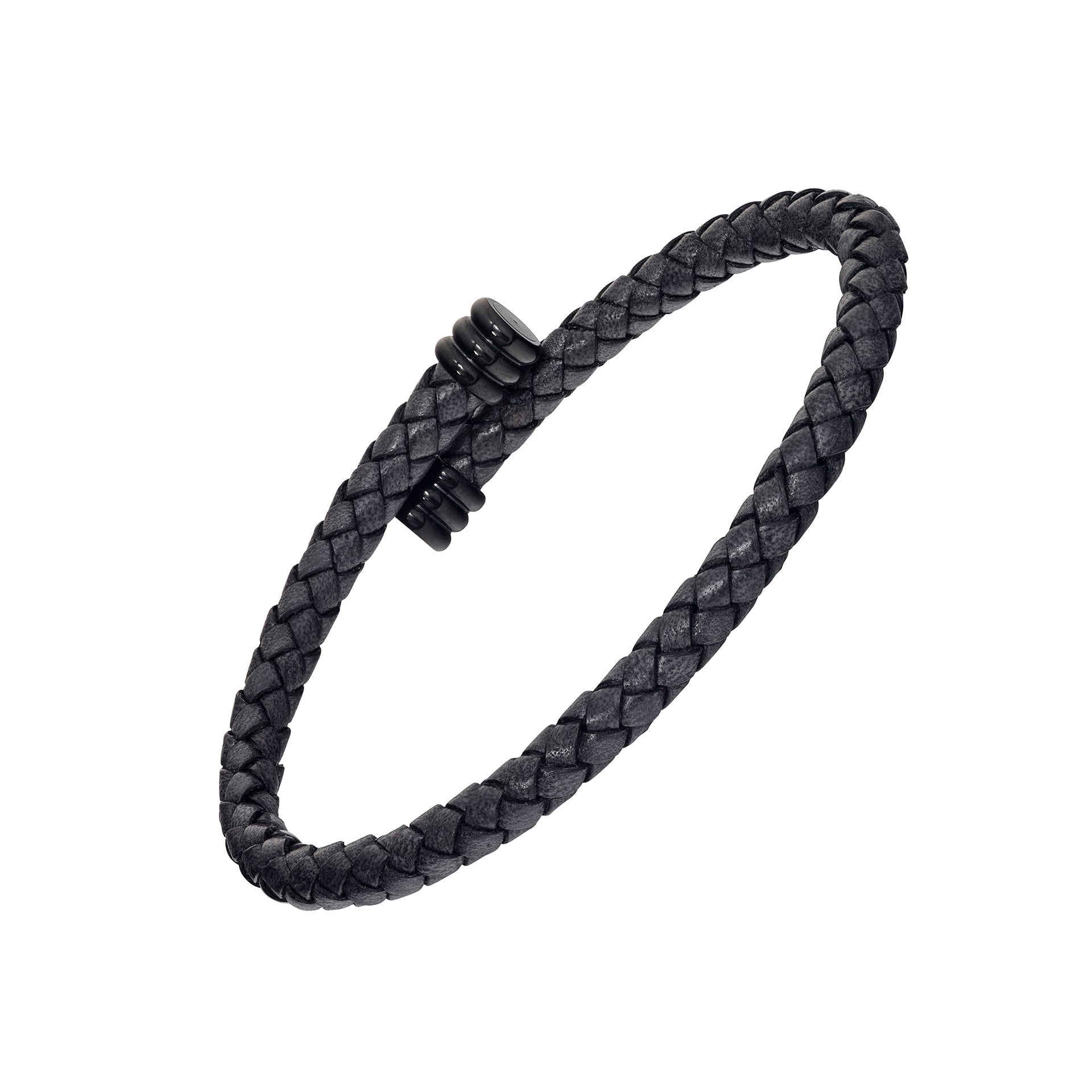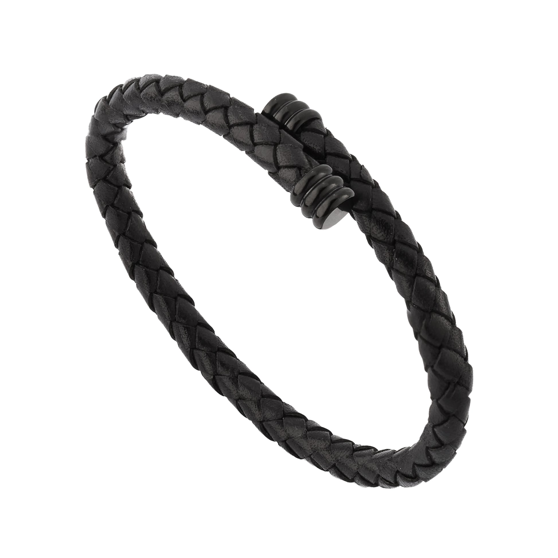 Flexible Braided Leather Bracelet with Stainless Steel